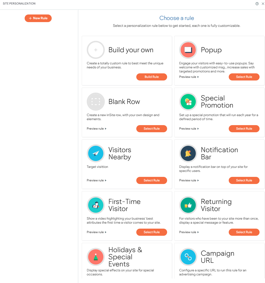 You can build your own personalization rules from scratch. Select and customize the triggers and actions for your personalization rule instead of selecting a pre-made rule.